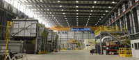 The Lafayette facility is uniquely capable of making the world’s largest aluminum-lithium ingots—approximately 50 percent larger than the nearest competitor, and big enough to make any single-piece component on today’s aircraft. Complementing that capability, Alcoa operates the world’s widest, 220” rolling mill at its facility in Davenport, Iowa, making it the only company capable of producing single-piece aluminum-lithium wing skins for the largest commercial airplanes. Single-piece parts make structures stronger, lighter and less expensive because they minimize the number of complex joints.